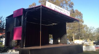 The Jumbo Mobile Stage comes with Black Backdrop, 1 x Stairs and Banner Bars, Internal Trussing.
