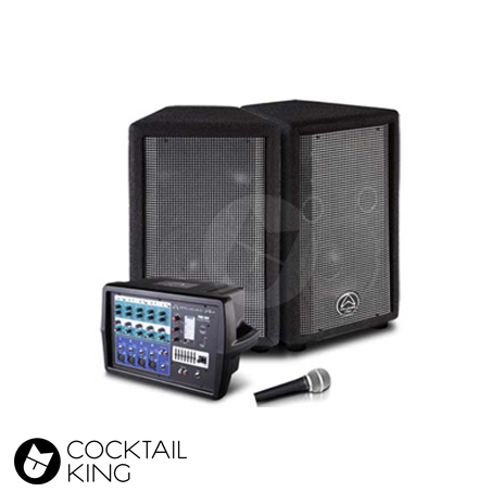For every event, this system would be ideal and comes with 2 speakers (built in receivers),1 Sound mixer, 2 Wireless microphones, 2 Stands, Cables and an iPOD connection. This sound system comes with